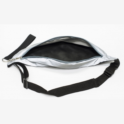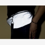 The waist bag is a good solution for runners and cyclists. Not only does it allow you to keep your phone and keys safe, but it also protects you after dark as it shines bright white in reflective light at night. It's made of 100 % reflective polyester material, which is used for the straps in warning vests.