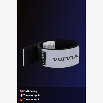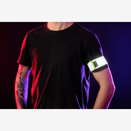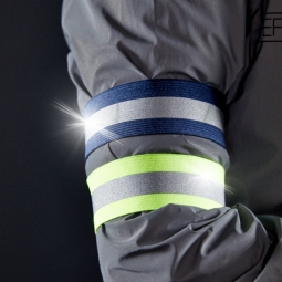Elastic bracelet with wide reflective stripe, fastened with Velcro.