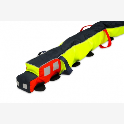 The walking snake is made of waterproof fabric and filled with lightweight foam. There are handles on the snake-shaped hose fitted with reflective strips to help children position themselves in pairs. The snake helps maintain safety and discipline when walking with a group of children.