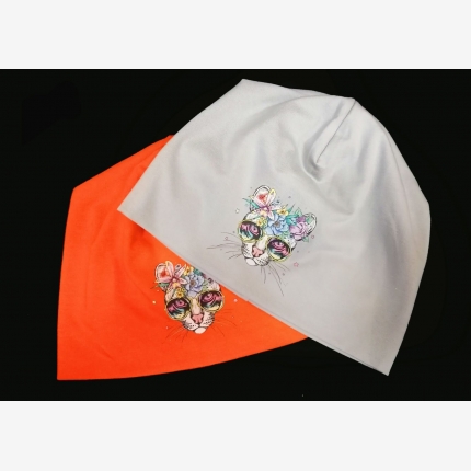 The beanie caps are double-layered, made of 95% cotton and 5% elastane. Very flexible and comfortable for both runners and children.