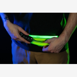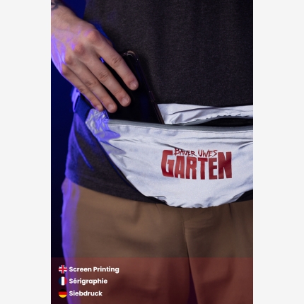 The waist bag is a good solution for runners and cyclists. Not only does it allow you to keep your phone and keys safe, but it also protects you after dark as it shines bright white in reflective light at night. It's made of 100 % reflective polyester material, which is used for the straps in warning vests.