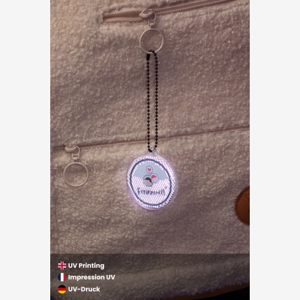 The best quality hard tags in unique designs and colours. These reflective elements reflect light and catch the eye of the approaching car driver, making it impossible not to notice! The reflective pendants are useful for both children and adults in order to be visible and safe on the road. Perfect for jogging, cycling, and working outside after dark, where good visibility is key for safety.