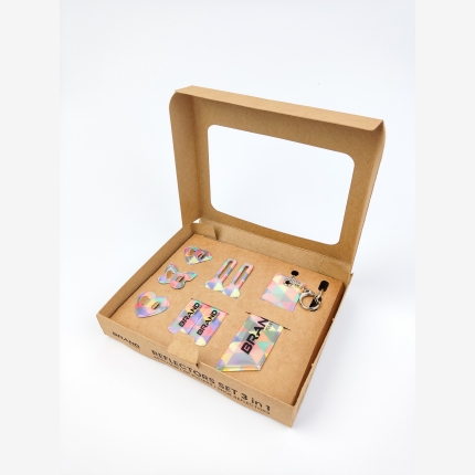 Enjoy a 3-in-1 set of reflectors that you can personalize fully to your requirements! Our offer includes the possibility of personalized printing on the packaging and the products themselves!