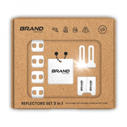 Enjoy a 3-in-1 set of reflectors that you can personalize fully to your requirements! Our offer includes the possibility of personalized printing on the packaging and the products themselves!
