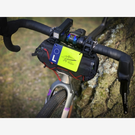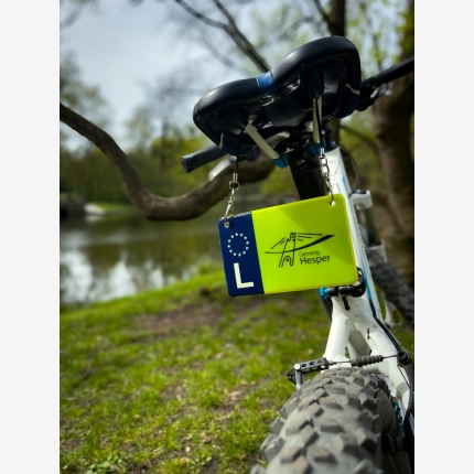 Reflective bike license plate attached to bike rack or saddle offers protection against lack of visibility after dark.