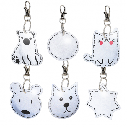 Reflective key chains are made of reflective material and have a hook for attaching it to a bag or backpack. They perfectly reflect the light of car headlights and at the same time serve as an interesting and positive decoration complement.